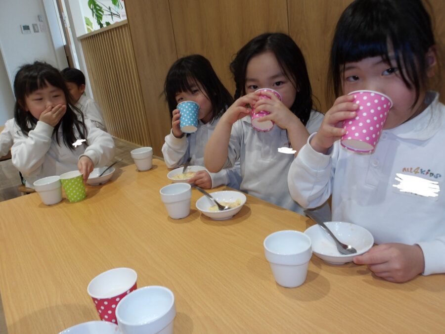 そのあとは、「うれしいなひなまつり」を歌い、みんなで白酒のかわりのカルピスを飲んでお祝いしました![]()
