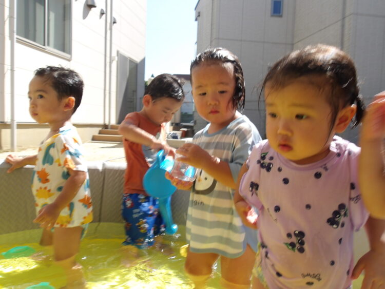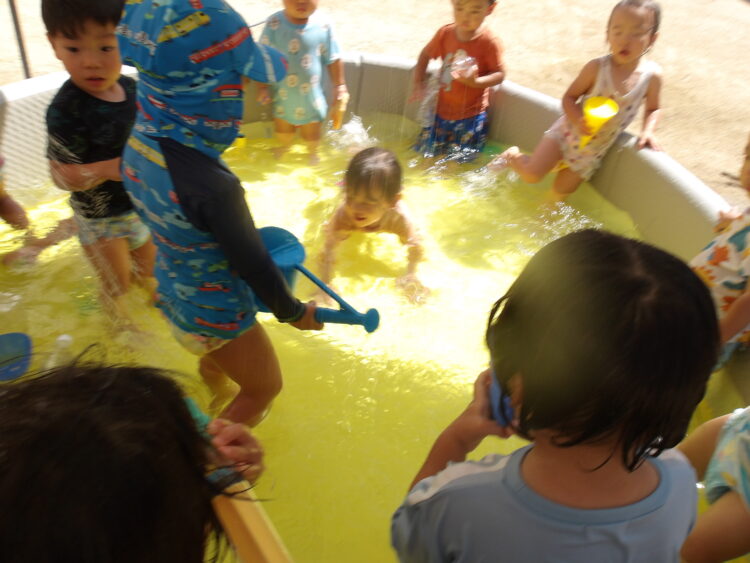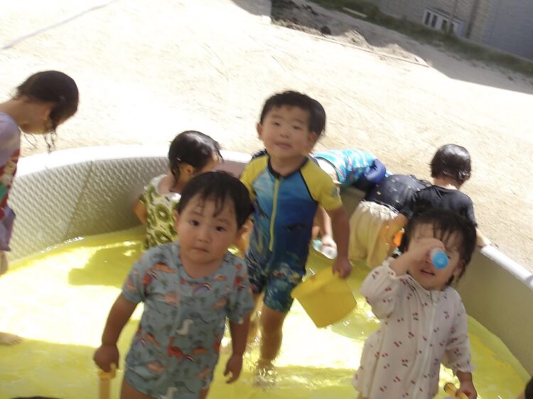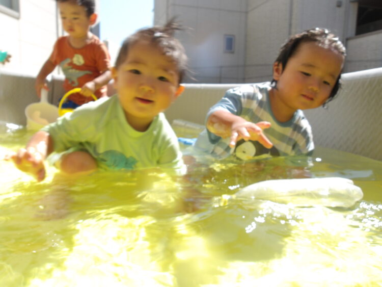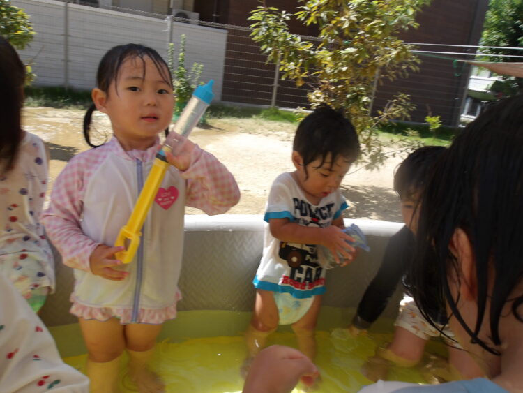 バタ足も出来る様になり水しぶきをあげてはみんなで大喜び!