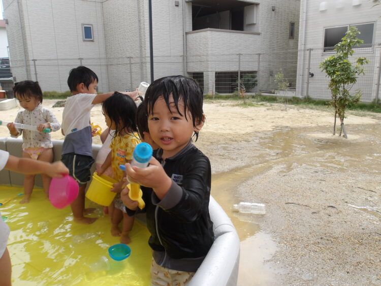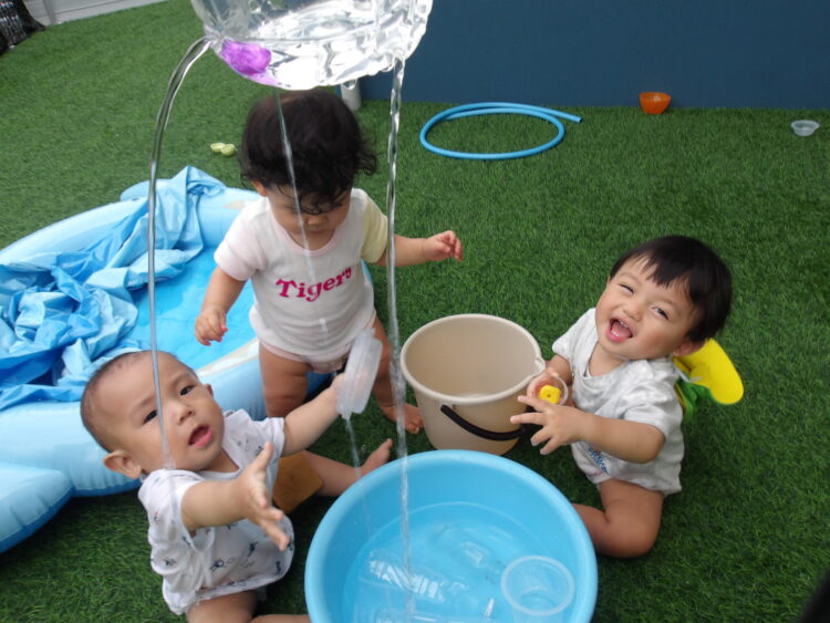 色んな事を見て、触って、試して、とっても楽しい水遊びでした。
