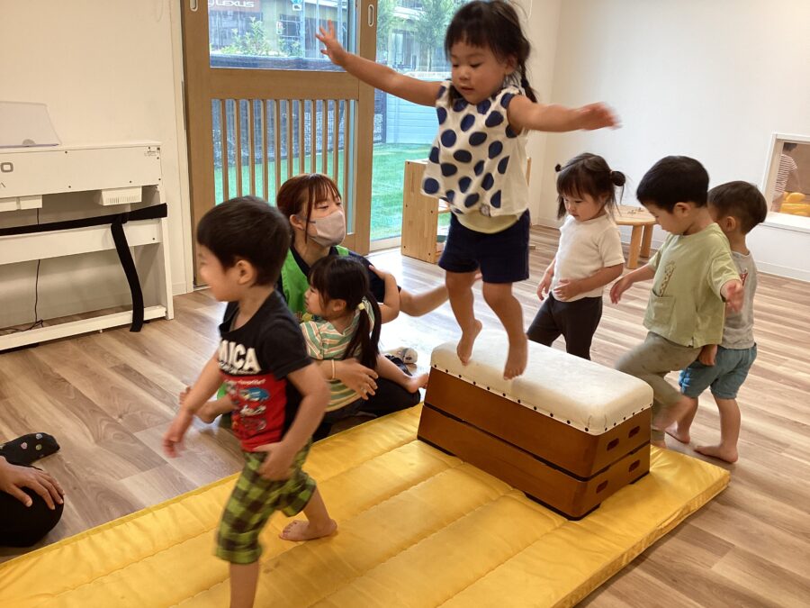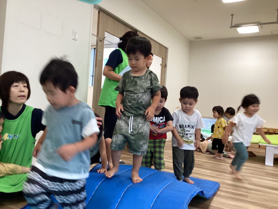 飛んでかがんで、バランスをとって…たくさん全身を動かして遊べたね