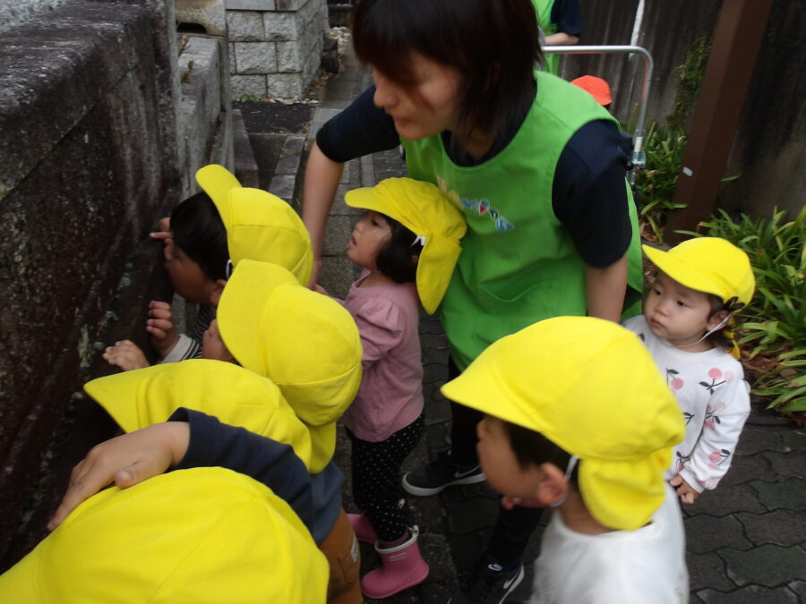 その後はひよこ組さんとあひる組さんでお散歩、うさぎ組さんは別ルートをお散歩に出発![]()