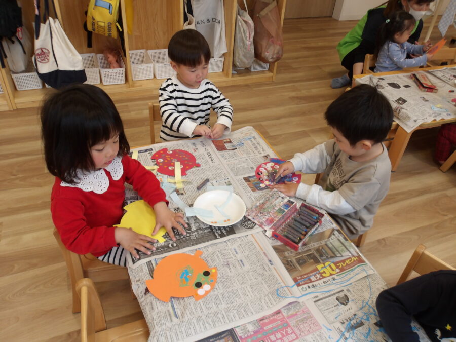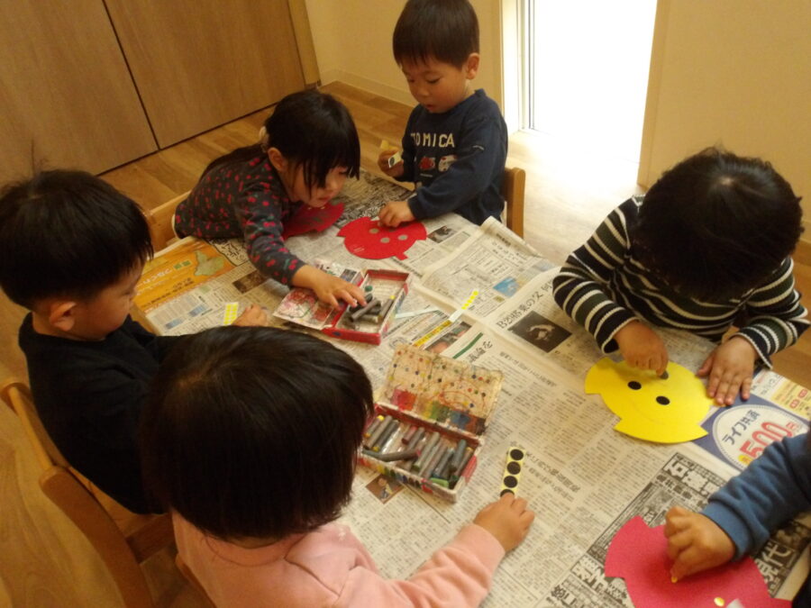 今日はお部屋でサーキット遊びや、お絵描き、シール貼りを楽しみました。