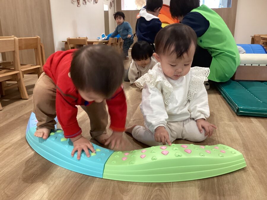 まずは触ってみたり、自分で歩いてみようと頑張っていましたよ![]()