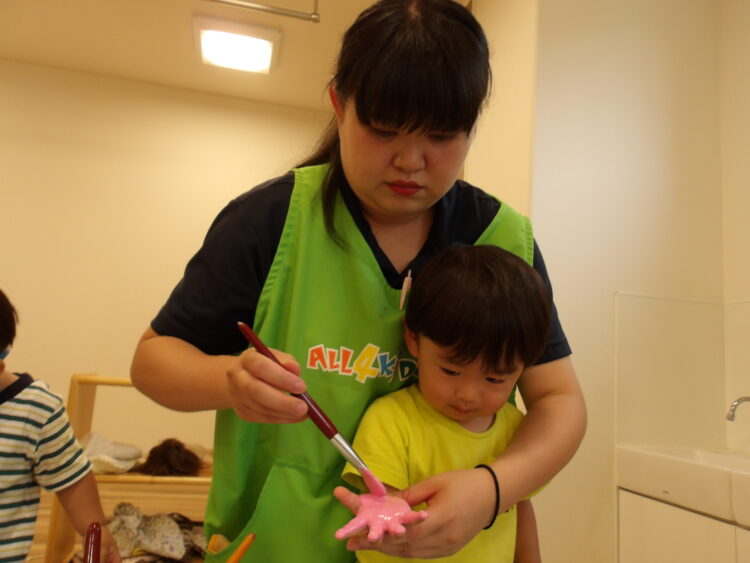 今日はお部屋で手形スタンプをしました🎨