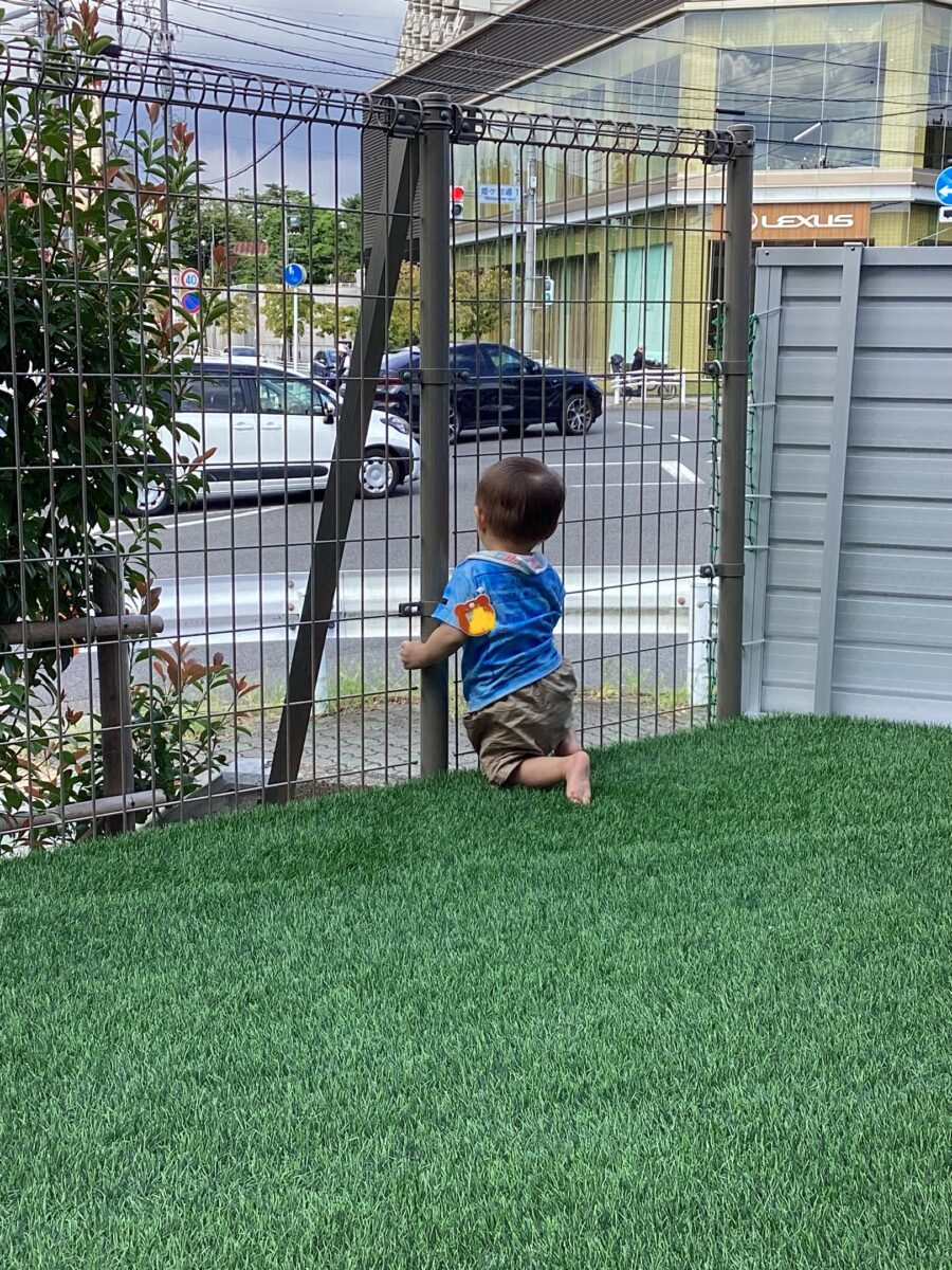 保育園の前の道をたくさんの車が通るのでじーっと見ていましたよ![]()