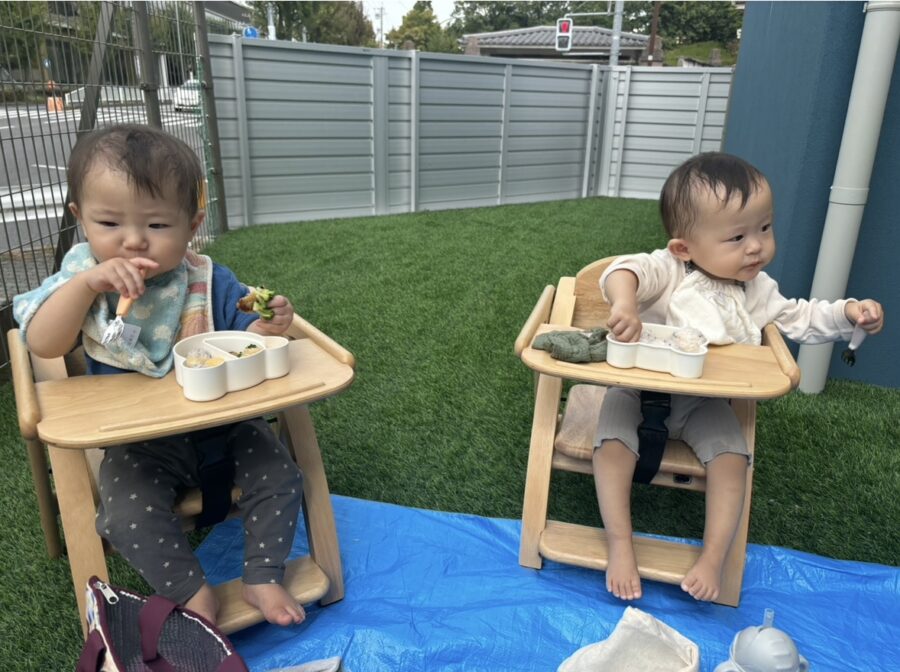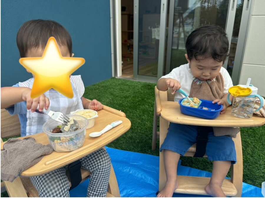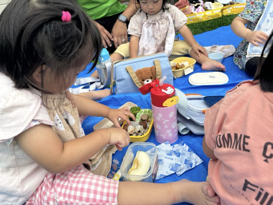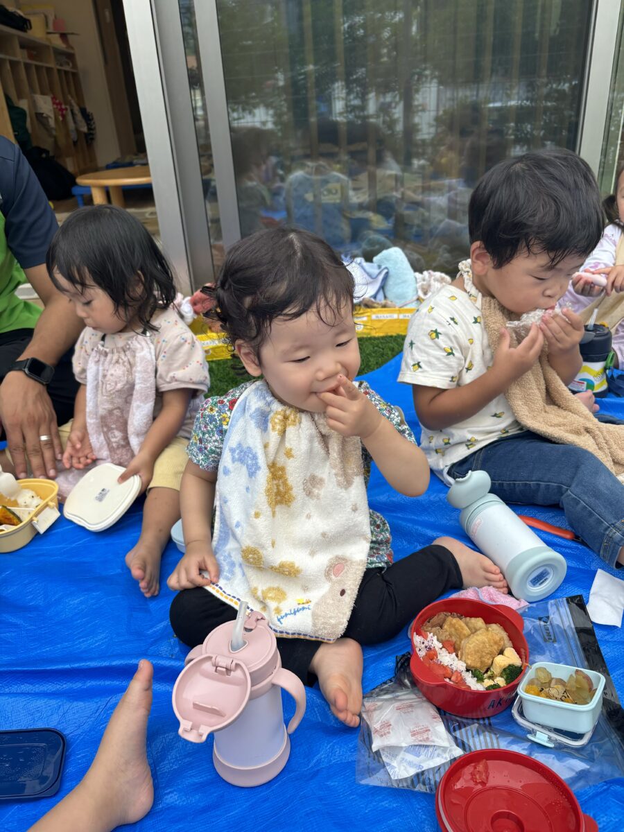 いつもとは違い、お外でお弁当食べるのが嬉しくてしょうがないこどもたち!食べ終わるまでずっとニコニコ笑顔でしたよ