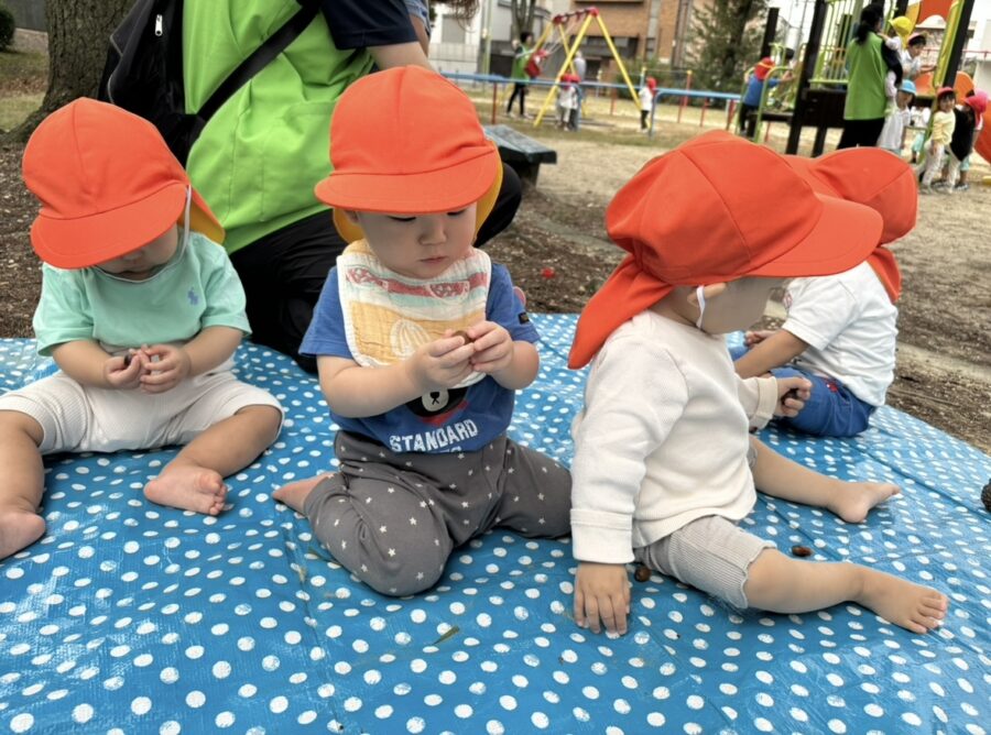 どんぐりがたくさん落ちていたね!振るとカタカタ音が鳴るのを発見していましたよ!
