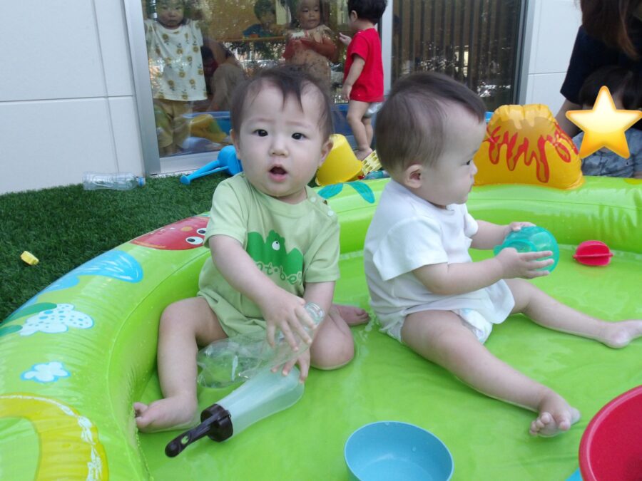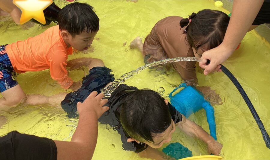 初めは泣けてしまっていたお友だちもだんだんと入れるようになってきました![]()