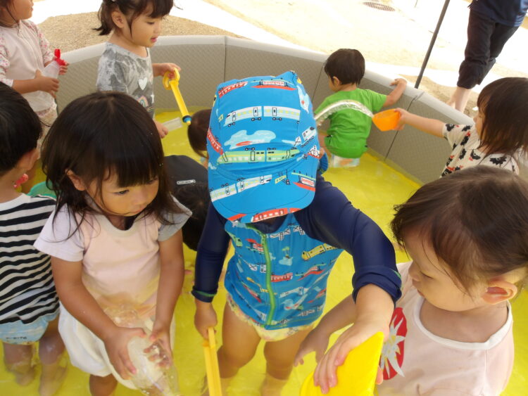 今日はプールで水遊びをしました!