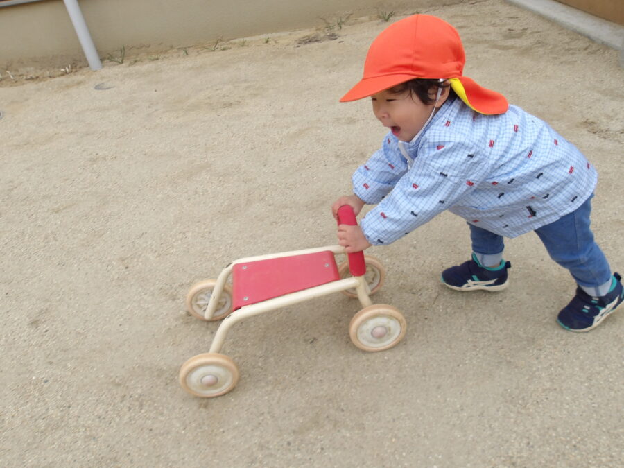 なに作っているの〜?と聞くと、お団子〜!とかケーキ🎂とか教えて手押し車を出すと、「のりたーい!」と争奪戦でしたよ![]()