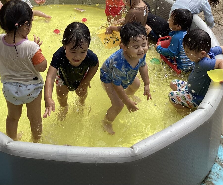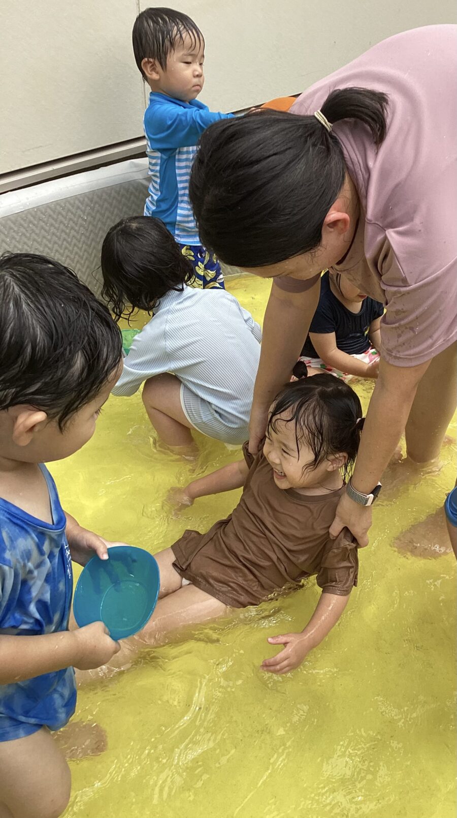 うさぎ組さんの中には、保育士に全身を入れてもらってビショビショになっている子もいましたよ〜