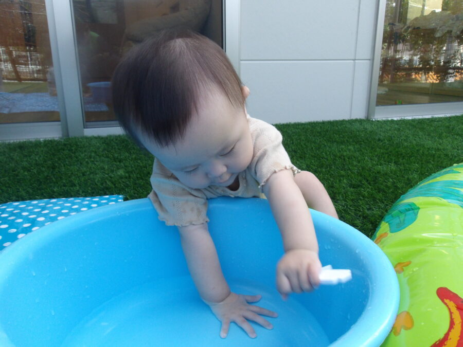今日は朝からいいお天気で、久しぶりにプール遊びができましたすっかり水にも慣れてきたひよこぐみさん