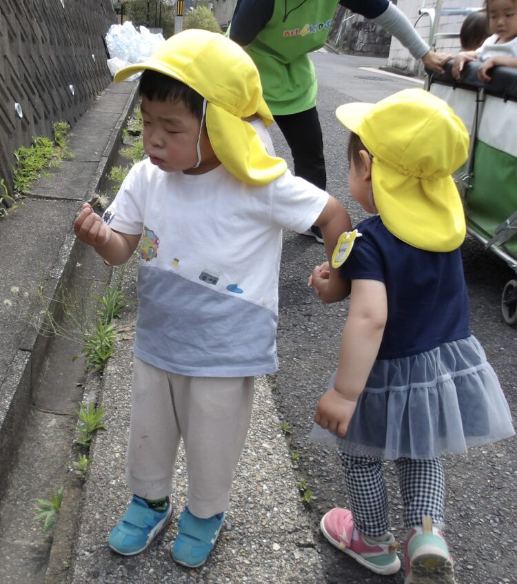 うさぎ組さん、ひよこ組さんでお散歩に行きました![]()