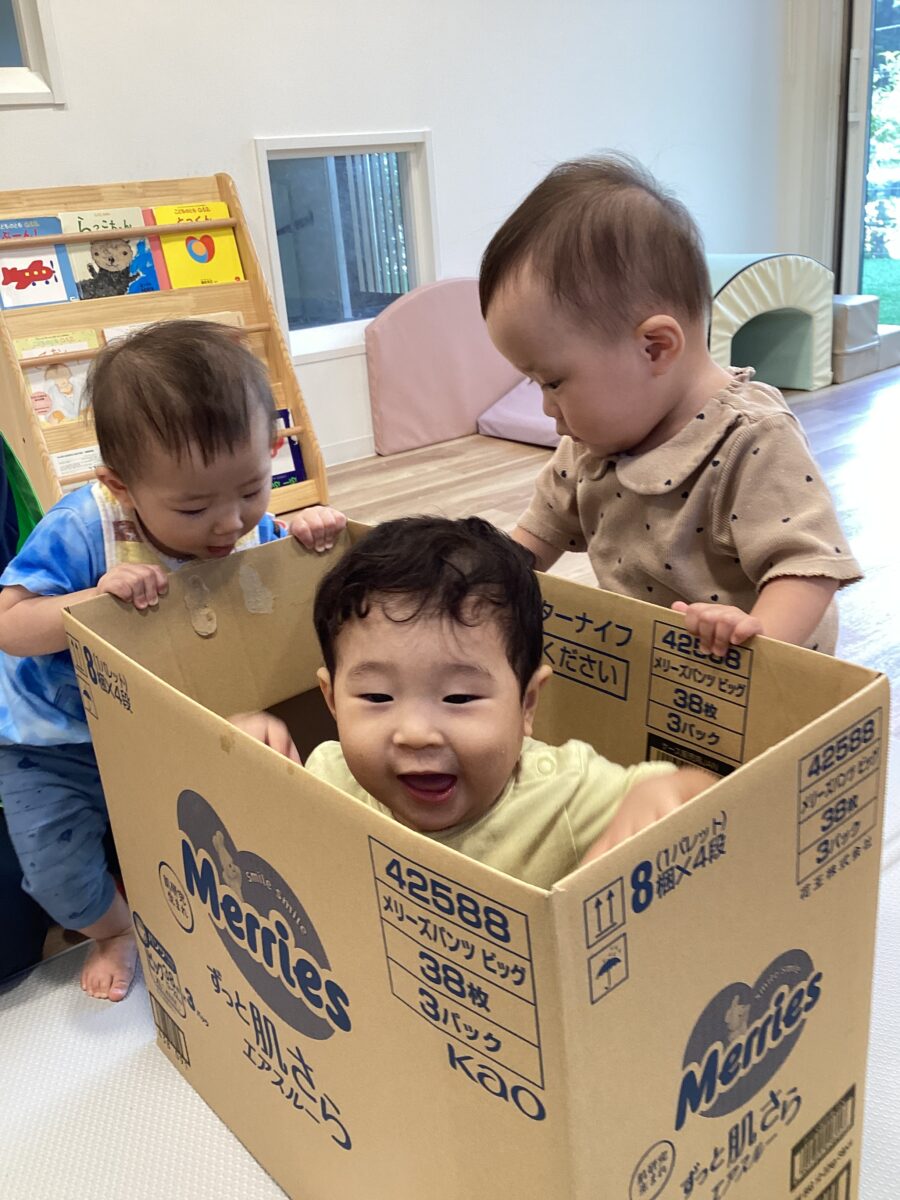 手を伸ばしてボールを取り出したり、中からボールを投げたりして遊びました![]()
