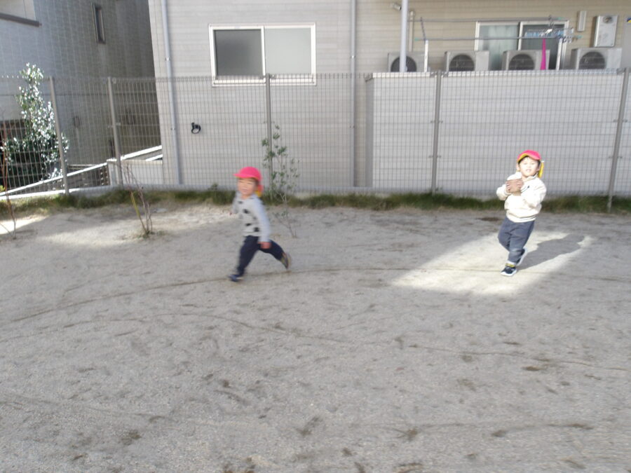 園庭では大きく円を描いてよーいどん!とたくさん走りました![]()