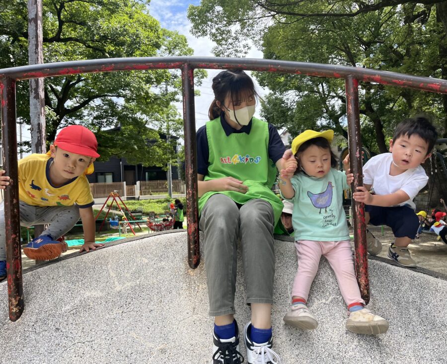 今日も、ひよこ、あひる、うさぎ組のみんなで西山公園に