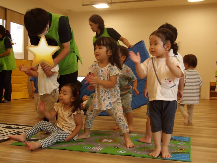 楽しみながらイングリッシュタイムやダンスをして…準備運動?バッチリ!