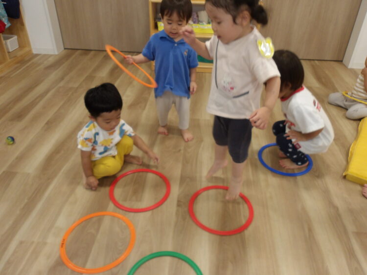ジャンプが難しいお友だちは丸の中を跨ぎながら移動していましたよ✨