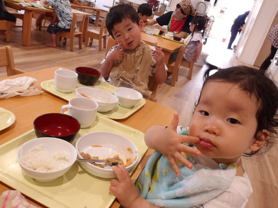 たくさん遊んだ後はご飯もりもり食べてお腹いっぱい![]()