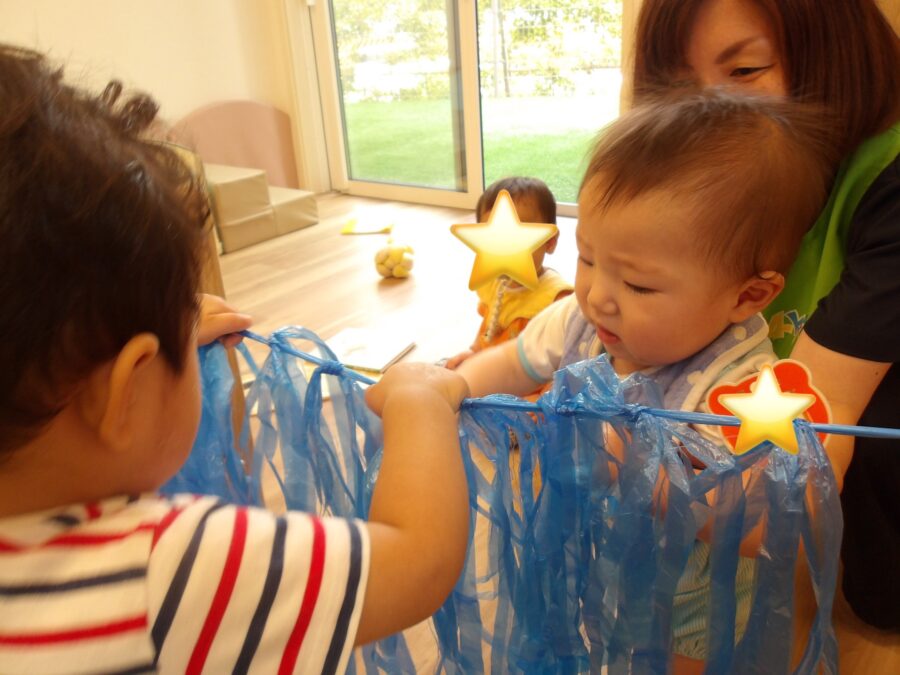ひらひら動くスズランテープを一生懸命掴んでいたよ![]()