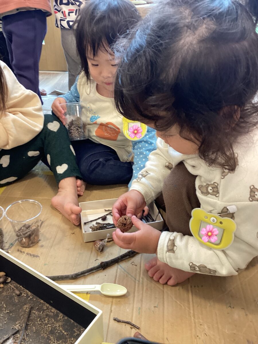 またお散歩でいっぱい木の実を取っていっぱい貼ろうね