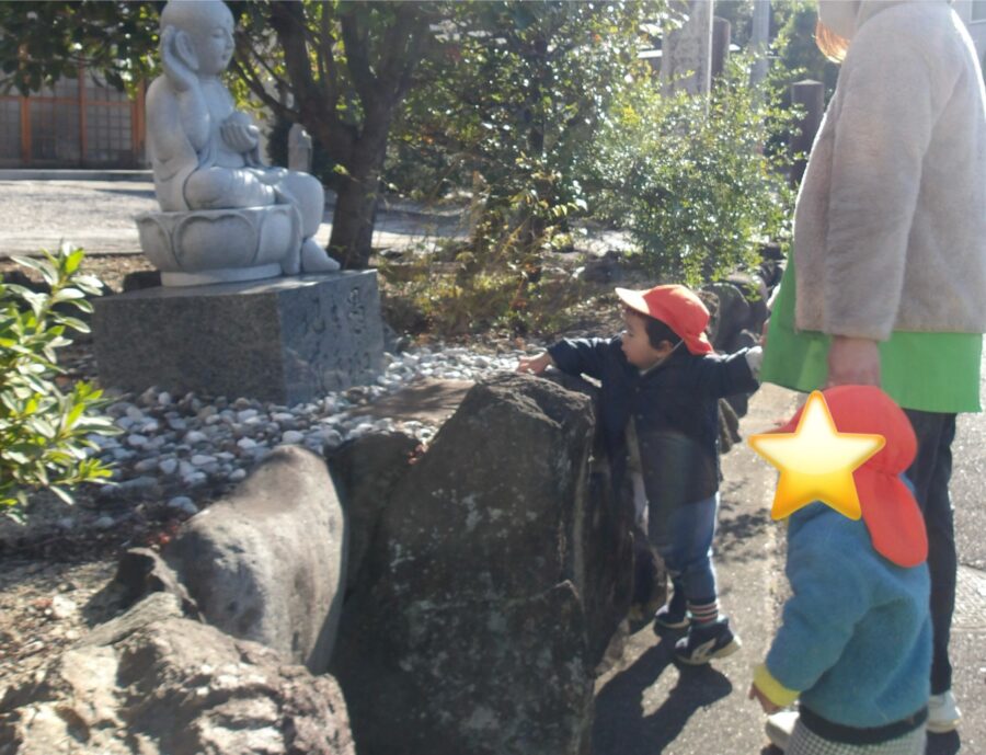 お地蔵さんにも「こんにちは〜」とご挨拶![]()