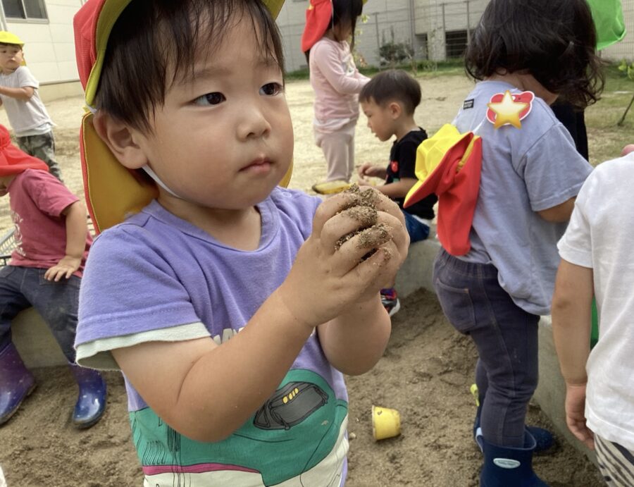 塀をうまく使ってケーキ屋さんを開いたり、お友達や保育士とお砂のお山をどれくらい高くできるかな?と砂を掘って作ったりして、思い思いのお砂場遊びを楽しんでいましたよ![]()