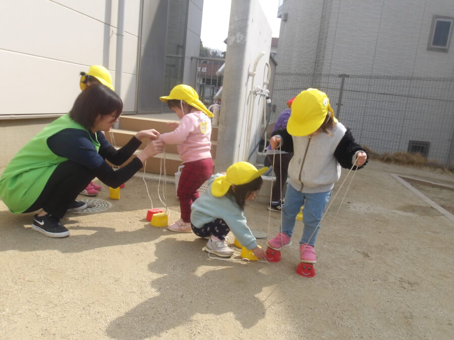 お外遊びの後にはひよこさんとお散歩に行きたいあひるさんで園の周りをお散歩に行きましたよ〜!!