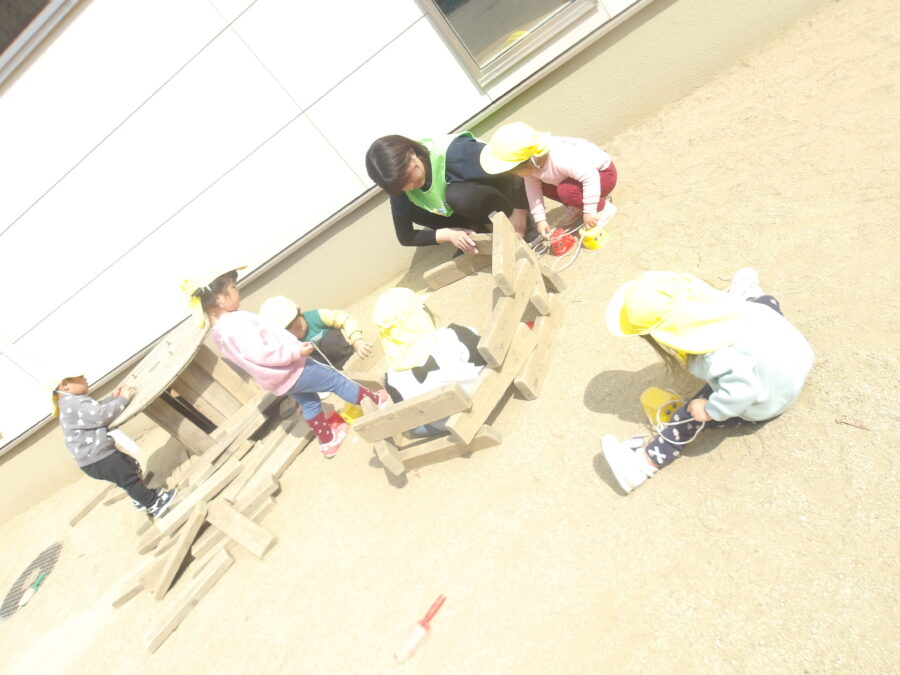 保育士と木のお家を作って🏠いますね!