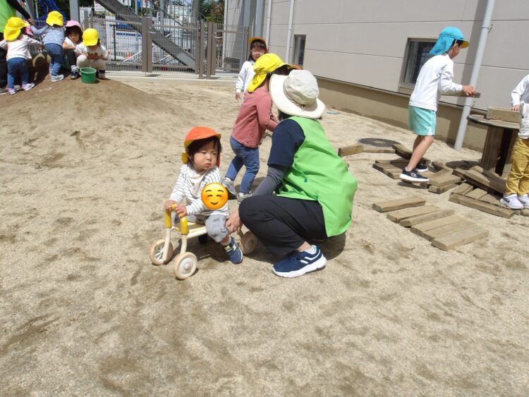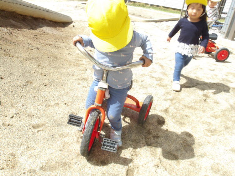 今日も手押し車や三輪車も人気で皆お兄さんお姉さんと代わりばんこで使って乗っていましたよ![]()