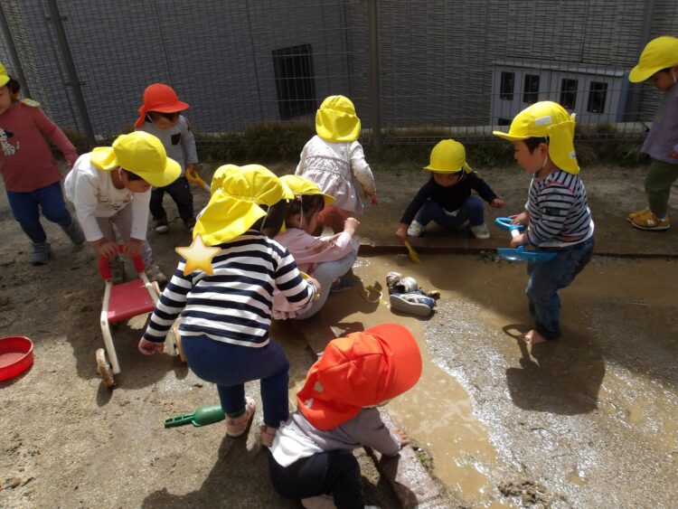 皆全身ドロドロになってお水でパシャパシャしたり、ドロドロになって遊んでいました!!とても楽しそうでしたよ![]()