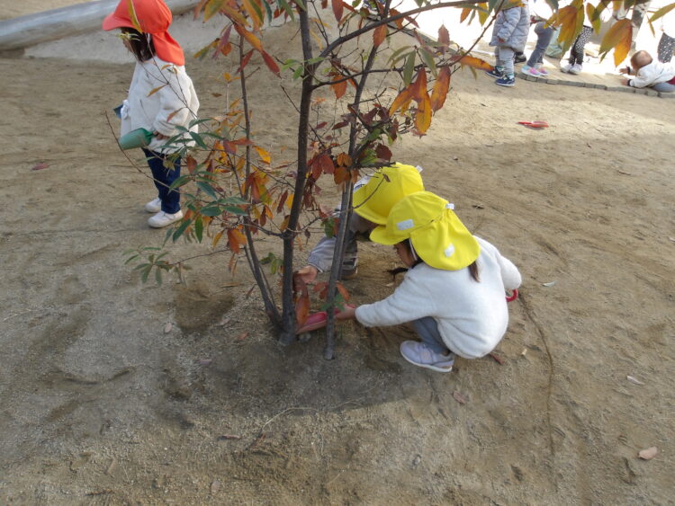 ひよこ組、あひる組、うさぎ組で園庭で遊びました。