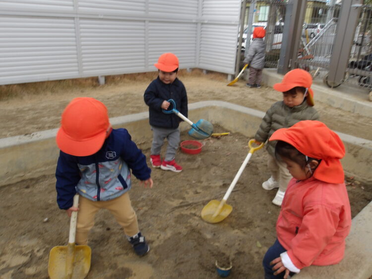 ひよこ組、あひる組、うさぎ組で園庭で過ごしました。いろんな遊びを楽しんでいましたよ。