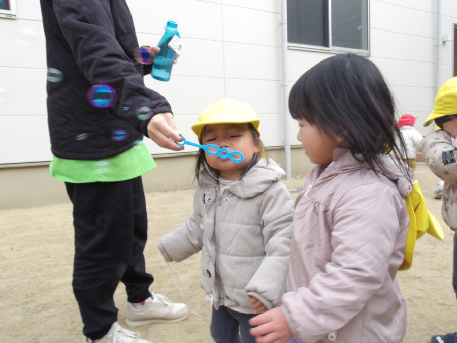 シャボン玉を待て待て〜と追いかけて体をいっぱい動かしていましたよ![]()