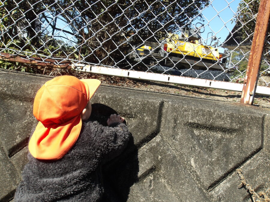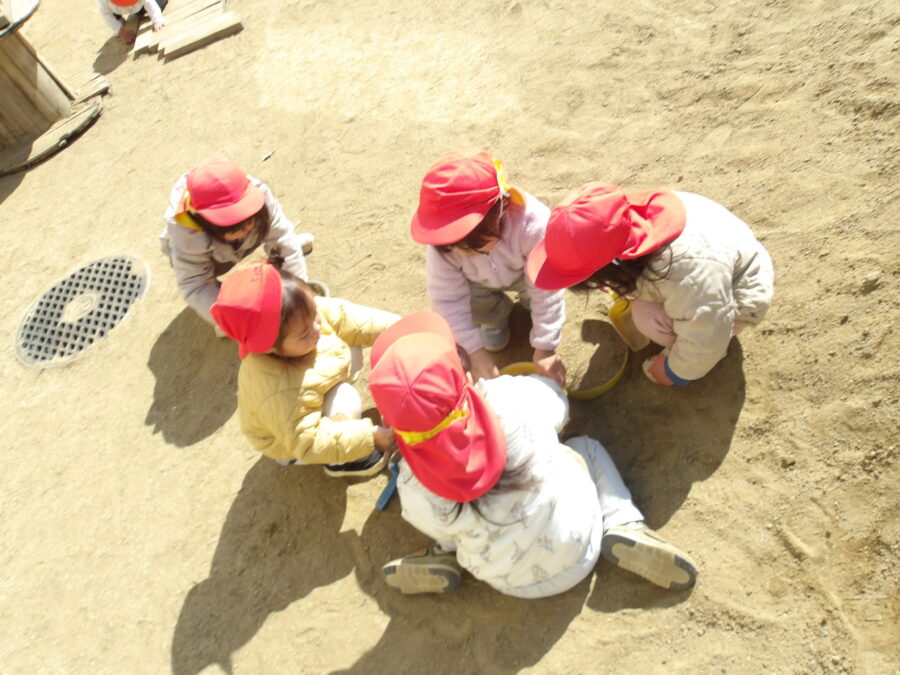 園庭では砂場で遊んだり、手押し車で遊んだり、この木の丸太も大人気です![]()
