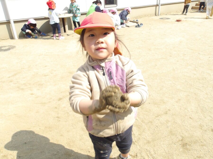 泥団子を作って、「先生ー見て〜」と見せにきてくれましたよ![]()