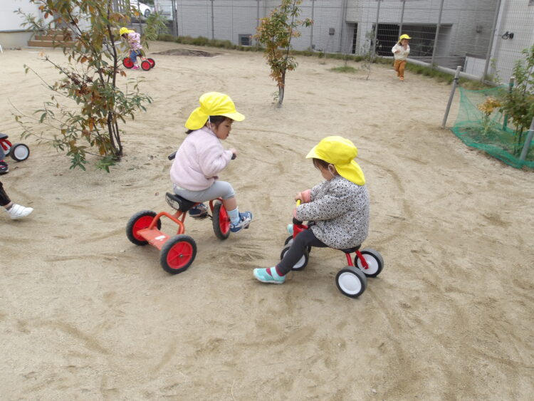 お友だちが乗りたそうにしていると代わってくれたり、「待っててね〜?」と話す姿もありましたよ!
