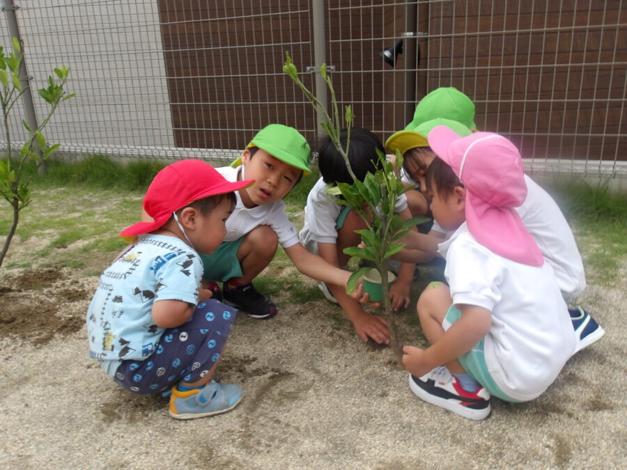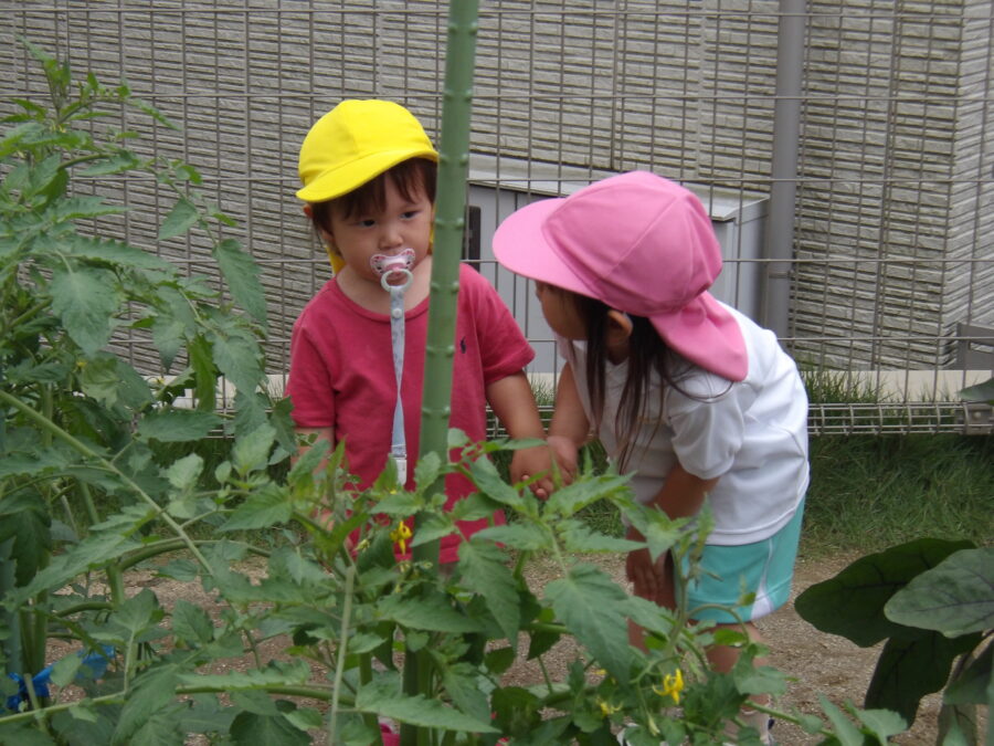 「あれは、トマト🍅だよ。」とそら組のお姉さん。