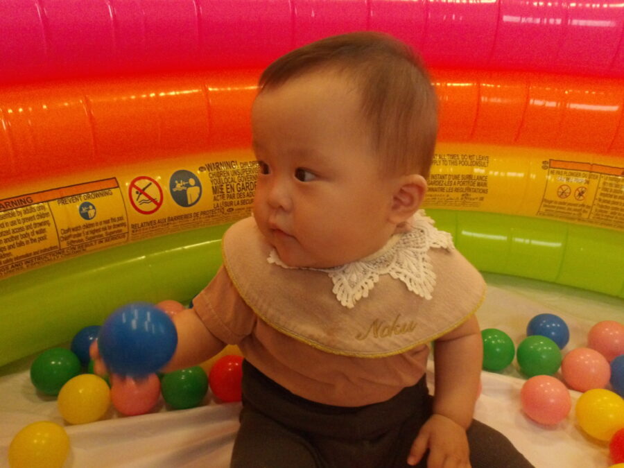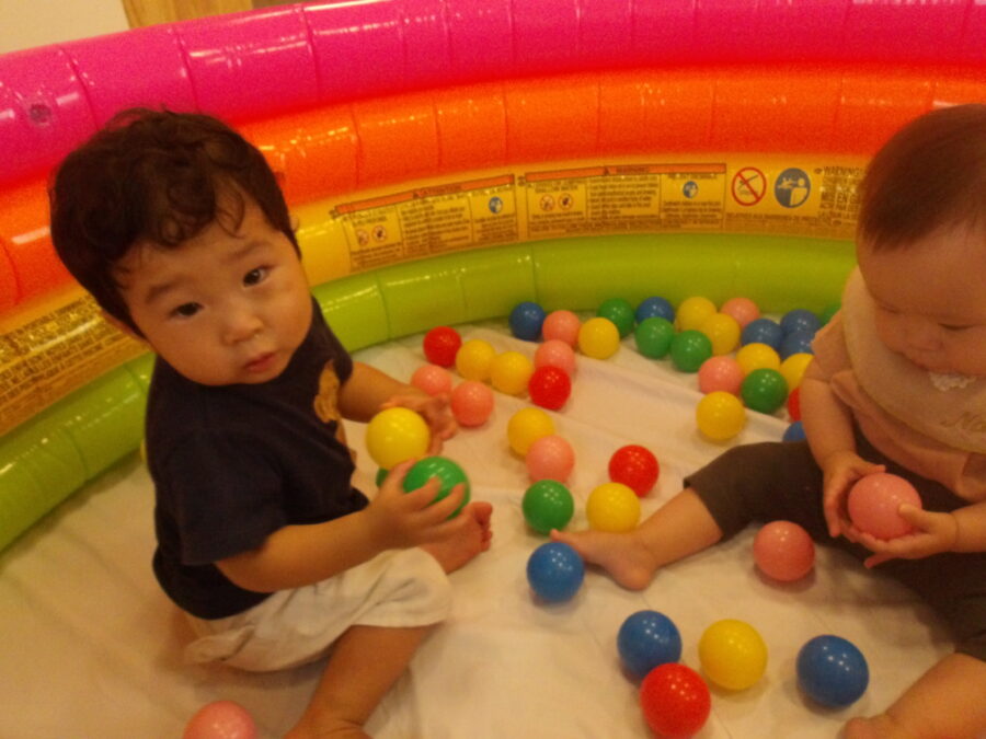 ひよこ組さんは、お部屋でボールプールを楽しみました。