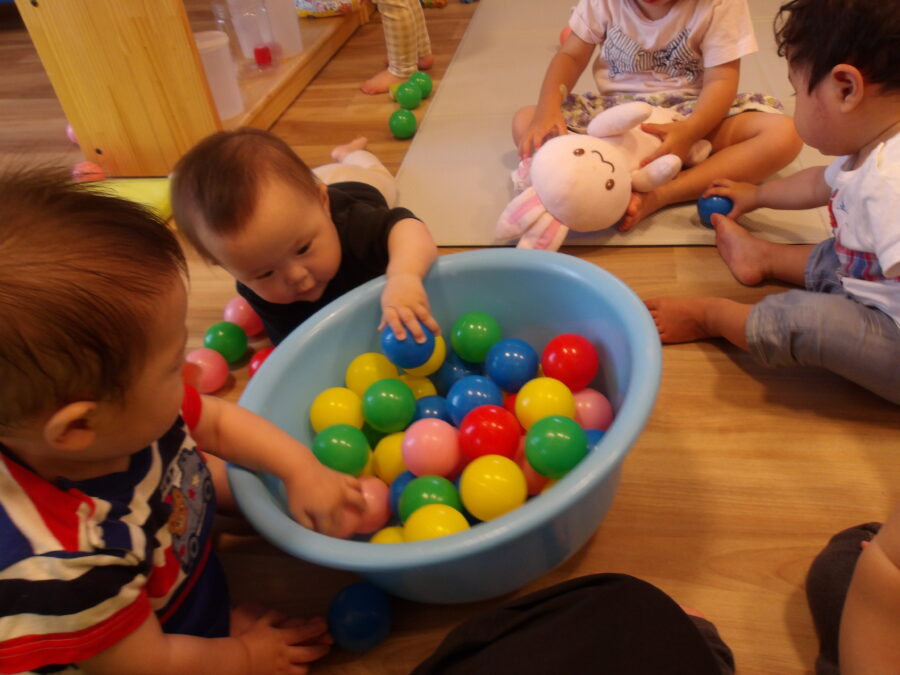 お部屋遊びでは、ひよこ組と一緒にボール遊び🥎