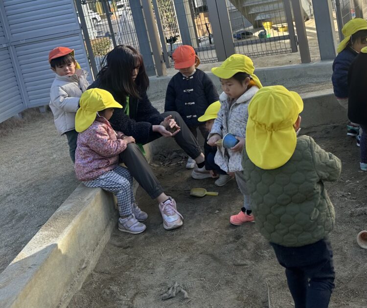 先生が作っている泥団子を見て真似をする様子が見られました✨