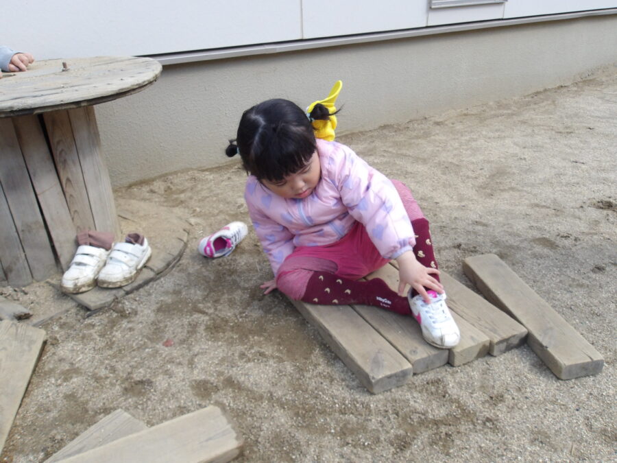 お砂場では、お団子の土に最適のちょうどいいドロドロだった土だったので、保育士やお友達とともにお団子作りをして楽しんでいる子もいました!!