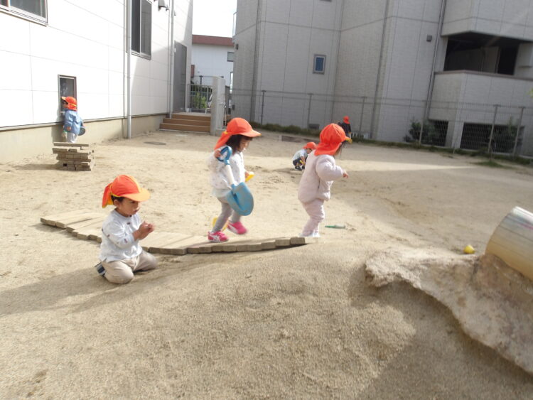 ひよこ組さんも少しずつですが、園庭遊びを楽しむことができています