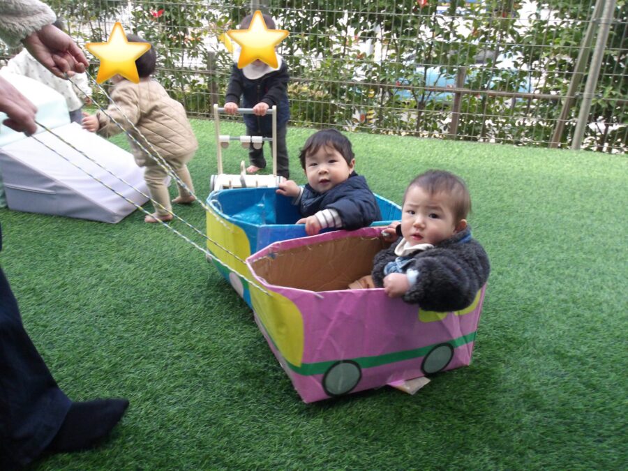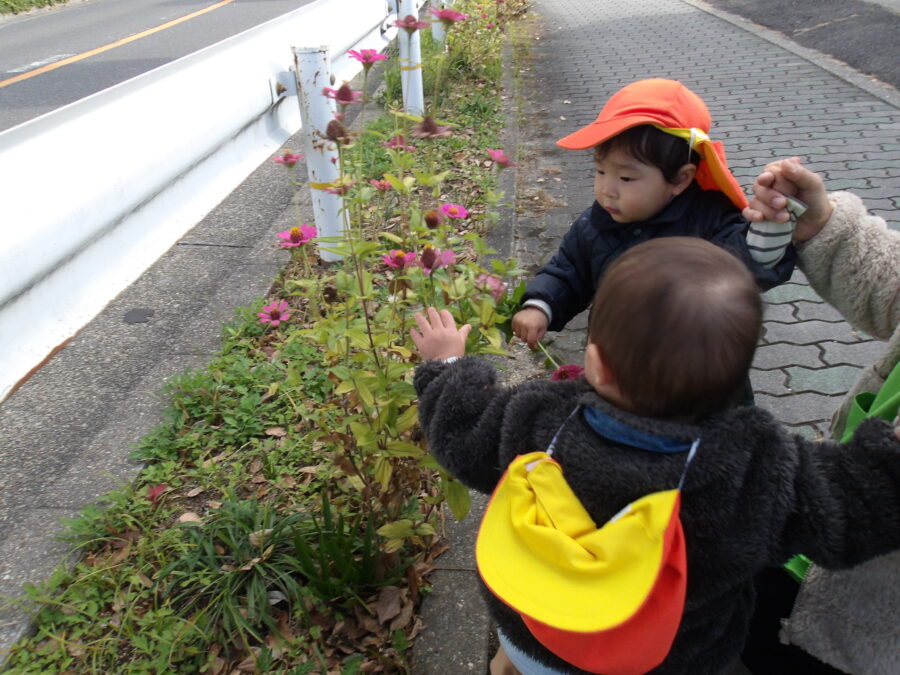 今日は風が冷たい1日でしたね園庭で遊んでから、保育園の周りをお散歩に行きました お花を見つけて、触って見たり、葉っぱを見つけて保育園まで持って帰ってきましたよ 保育園に帰ってきてから、テラスで少しだけ遊びました運動会でやったバスごっこの歌に合わせて、ノリノリなひよこぐみさんでした 寒くても元気いっぱいでたくさん体を動かして遊べました