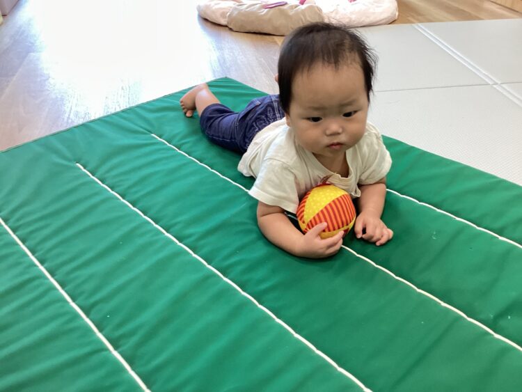 室内でマットを使ってハイハイやずり這いをしました![]()