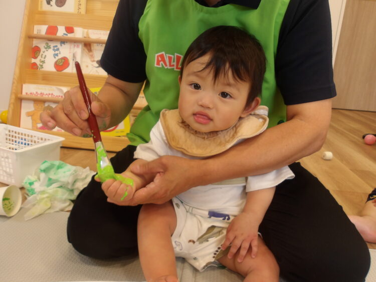 絵の具をつけるとジーと見ていました