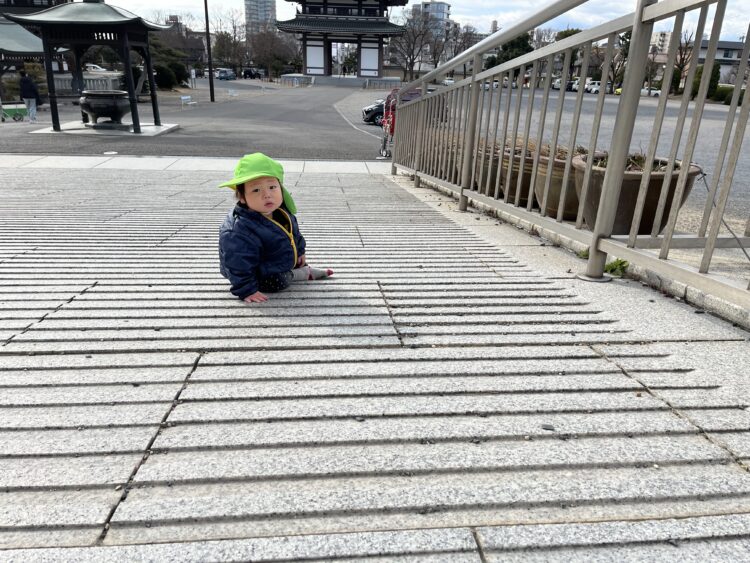 本堂に行くスロープを歩いていったり、ハイハイで来ました![]()