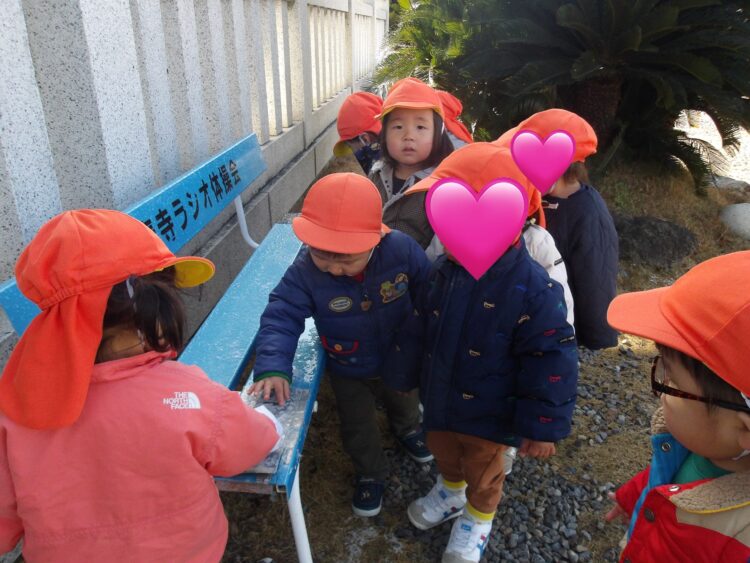 日陰には、雪や氷が少し残っていて「ゆきー❄️」とニコニコで触る姿があったり、「ゆーきやこんこ🎵」と楽しそうに歌っている子もいましたよ☺️