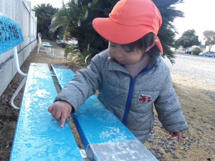 すぐに溶けてしまうと少し残念そうでしたが、大きな塊が取れて「見て!雪だよ!」と溶ける前にお友だちや先生にに見せることができると、とても嬉しそうに笑っていました💕