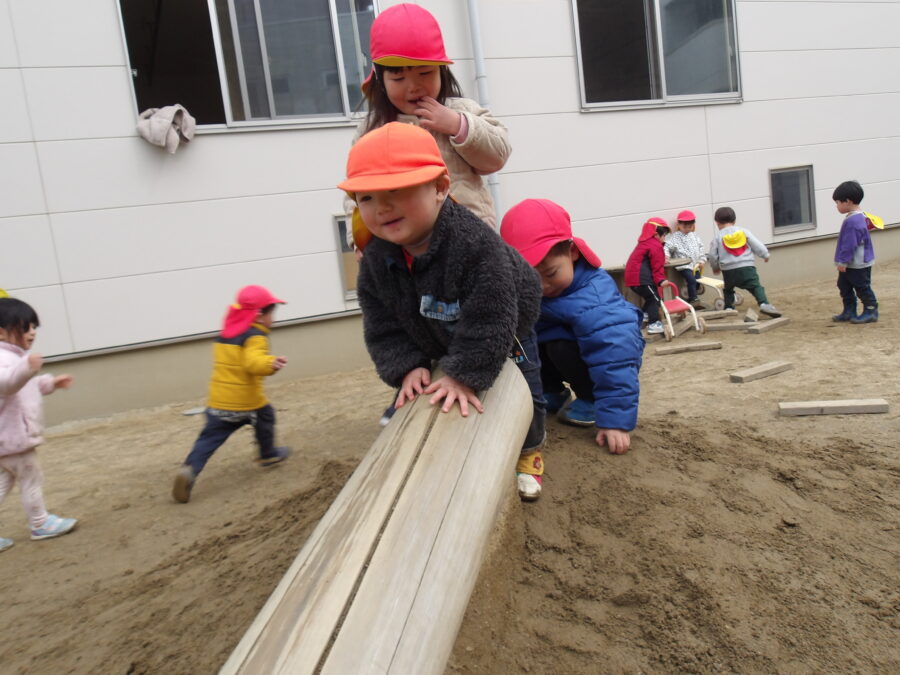 お散歩から戻って園庭でも元気いっぱい遊びました